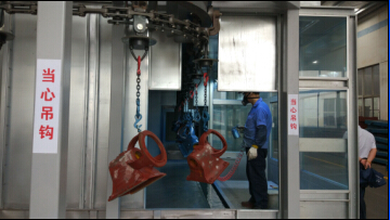 一,油漆車間 經(jīng)過3個(gè)月的努力,油漆車間終于完成了年初規(guī)劃的改造工作。工程包括:半自動(dòng)噴漆線(含4.5m³空壓機(jī)機(jī)組),φ1米×0.7米噴砂機(jī),2.6米×1.1米浸漆池,另配套安裝了0.5噸自立式起重機(jī),1噸懸臂起重機(jī),2.8噸單梁起重機(jī),總投入約200萬元。 其中噴漆線設(shè)備整齊、美觀、實(shí)用,噴漆時(shí)通過清理除塵去毛刺→噴漆→流平→再噴漆→再流平→烤爐烘烤→強(qiáng)制冷卻等多道工序,徹底解決以前油漆質(zhì)量不穩(wěn)定的問題。 噴砂機(jī)徹底解決了以前鑄件表面鐵銹和鑄造砂無法去除干凈的問題。噴砂好的零件直接浸漆處理,不僅效率高,防銹漆比原手工涂漆薄,均勻,美觀。 以上多套設(shè)備投入使用后明顯提高了生產(chǎn)效率和改善了油漆車間工人的工作環(huán)境。